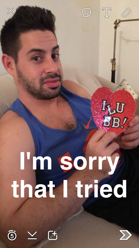 Kidding! After that we excitedly talked about how we were going to spend Valentine's Day — wedding planning. There's definitely been a change in tone about it: We began the week shouting about booking photographers but ended it whispering in bed about how cool everything's going to turn out when we figure out all the details. Whereas he asked me on Monday to stop telling people we were going for a "classy frat party" vibe, he's since contacted the band about having a top 40-full playlist.