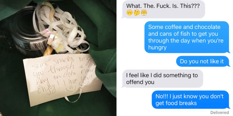 "I got them for you! Because I love you and you had a long day!"