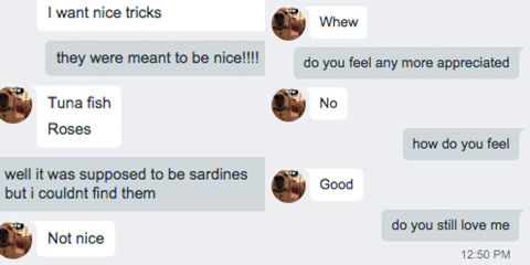 "Do you want me to only buy you tomato plants to say 'I love you' from now on?"(I hate tomatoes, they're disgusting.)